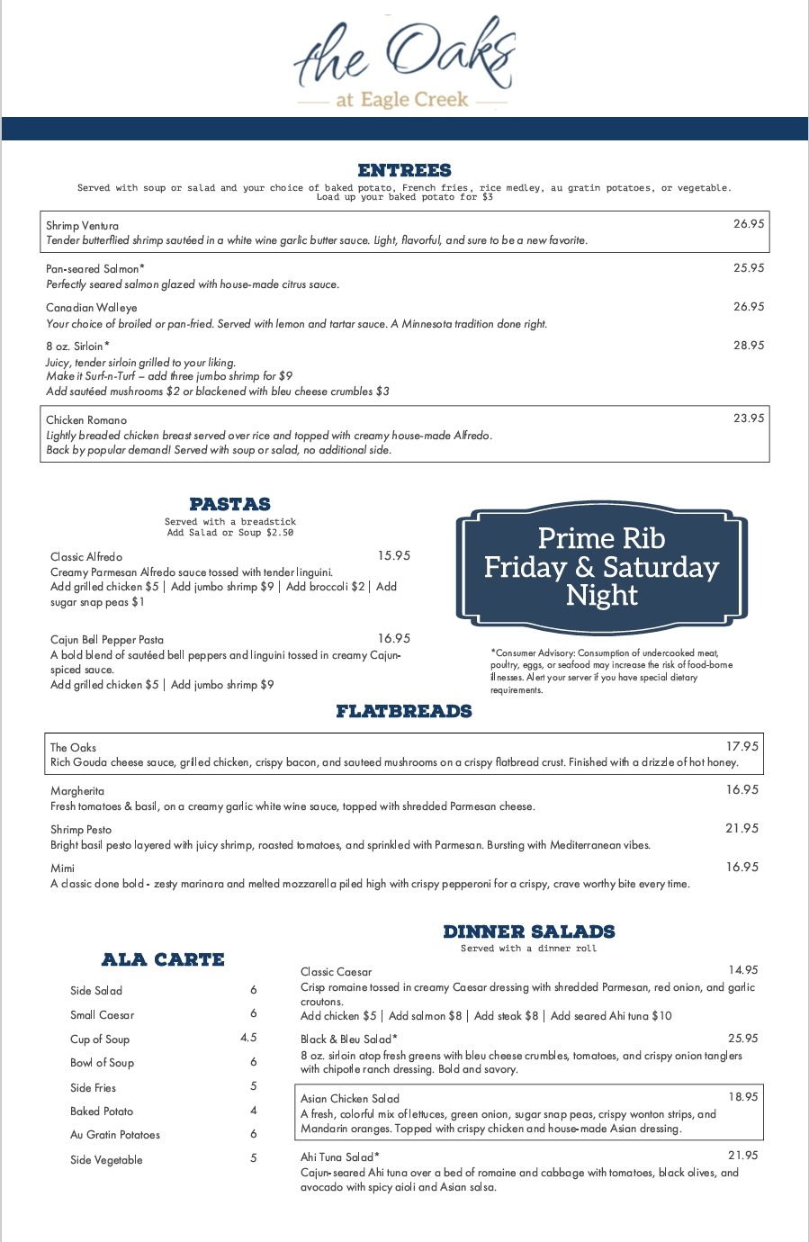 Join us every Friday and Saturday for our popular Seafood & Prime Rib Features – quickly becoming a local favorite that bring folks back again and again
